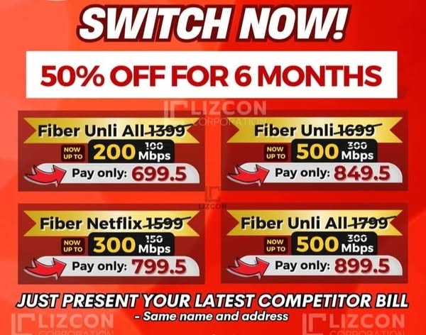 📌50% OFF FOR 6 MONTH'S BILL FOR SWITCHER (From other telco transfer to PLDT)