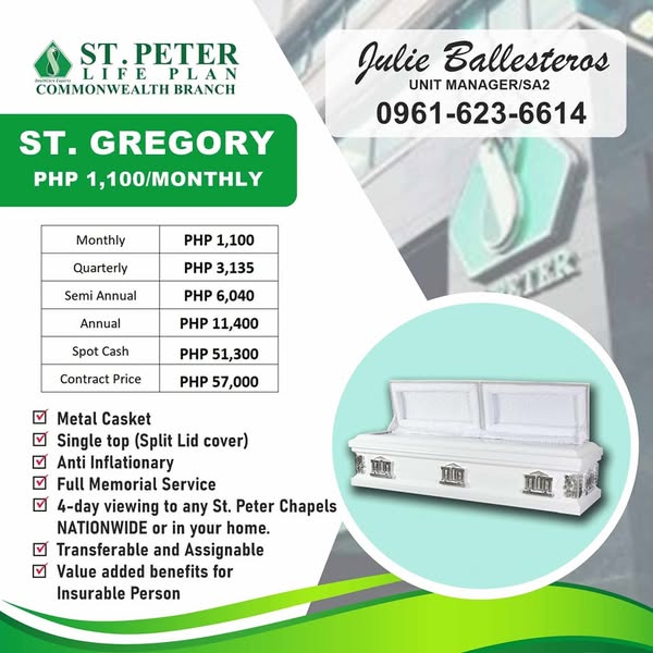 搜索关键词 life insurance, funeral plan, St. Peter plan, affordable insurance, family protection, insurance benefits, accident coverage, death insurance, installment plan, peace of mind优势 Accident Insurance,Cash Assistance,Waiver of Installment,Unpaid Balance Fully Paid (in case of accidental death),One Year Contestability Period,Extended Cash Assistance,Unrendered Service Benefit,Assignability,Transferable,Free Viewing Period,Affordable Installment,Loan Option,Anti-Inflationary Feature,Peace of Mind for Family