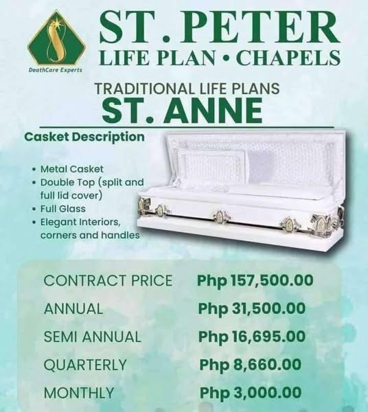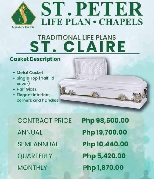 搜索关键词 st peter life plan, life insurance philippines, affordable insurance, funeral plan, accident insurance, family protection, peace of mind, monthly installment, cash assistance, insurance benefits优势 Accident Insurance,Cash Assistance,Waiver of Installment,Unpaid Balance Fully Paid (Accident),One Year Contestability Period,Extended Cash Assistance,Unrendered Service Benefit,Assignability,Transferable,Free Viewing Period (4 days),Affordable and Flexible Installment,Loan Options,Anti-Inflationary Feature,Peace of Mind for Family