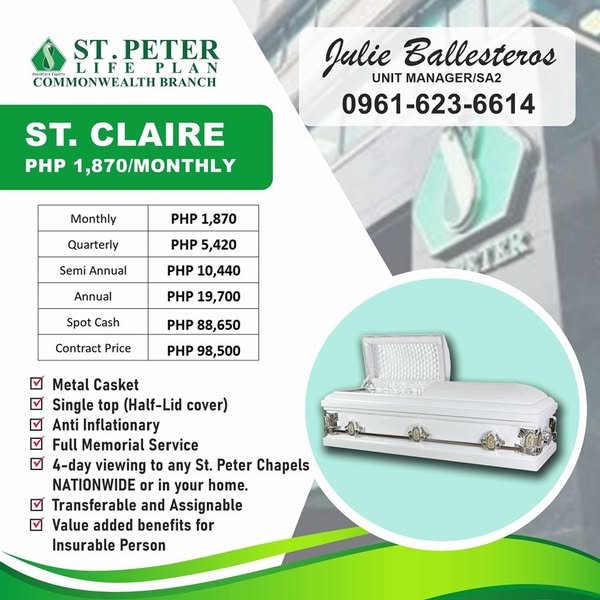 搜索关键词 life plan philippines, affordable funeral plan, st peter life plan, installment insurance, accident insurance, family protection plan, funeral service benefits, pre-need insurance, peace of mind family, financial security death优势 Accident Insurance,Cash Assistance,Waiver of Installment,Unpaid Balance Fully Paid in Case of Accidental Death,One Year Contestability Period,Extended Cash Assistance,Unrendered Service Benefit,Assignability,Transferable,Free Viewing Period,Affordable and Flexible Installment,Loan Option,Anti-inflationary Feature,Peace of Mind for Family