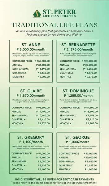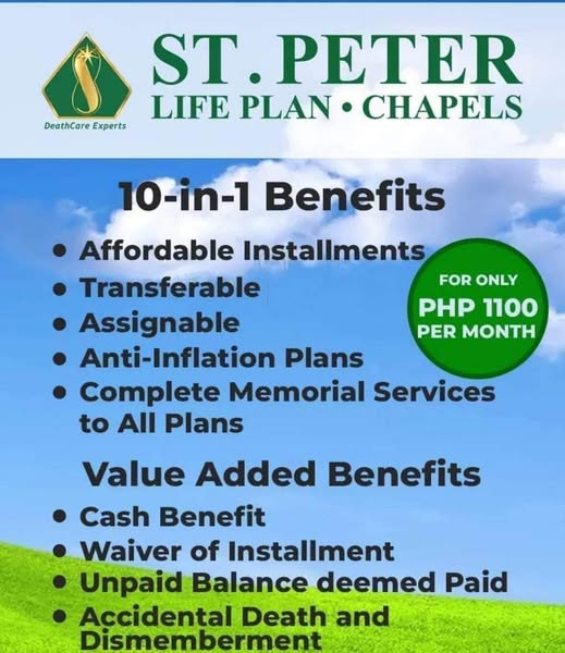 搜索关键词 St. Peter Life Plan, Life Insurance Philippines, affordable funeral plan, accident insurance coverage, financial security family, peace of mind planning, installment life plan, St Peter Chapels, funeral service benefits, cash assistance program优势 Accident Insurance,Cash Assistance,Waiver of Installment,Unpaid Balance Fully Paid in Case of Accidental Death,One Year Contestability Period,Extended Cash Assistance,Unrendered Service Benefit,Assignability,Transferable,Free Viewing Period,Affordable and Flexible Installment,Loan Options,Anti-inflationary Feature,Peace of Mind for Family