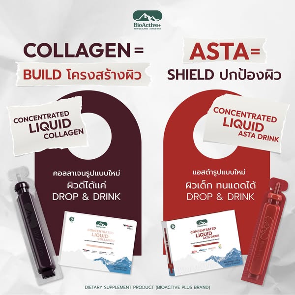 搜索关键词 collagen asta, skin health, liquid supplement, Thailand skincare, BioActive Asta, radiant skin, anti-aging, sun damage protection, online shop优势 Skin Firming and Brightening,Sun Protection,Fast Absorption,Concentrated Liquid Formula