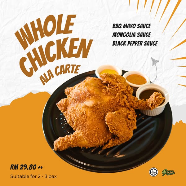 搜索关键词 western food promotion, December feast, whole chicken deal, Penang restaurant, Icon City dining, Bayan Lepas food, sharing meal, family dinner, festive menu, green island优势 Festive December promotion,Includes 3 signature sauces,Suitable for sharing,Combo deal offers variety