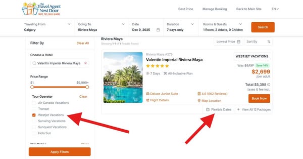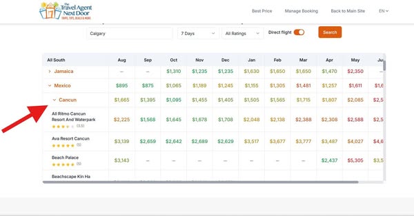 If you find a resort you like, click the “Flexible Dates” button under the image. This shows you a full month calendar with daily pricing so you can quickly spot the best deal.
