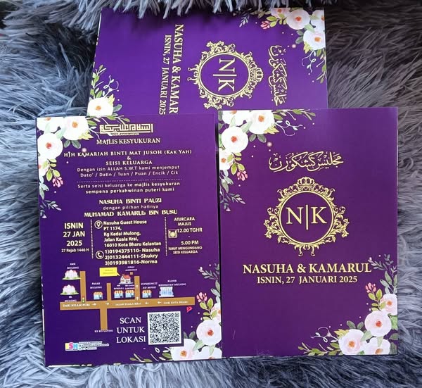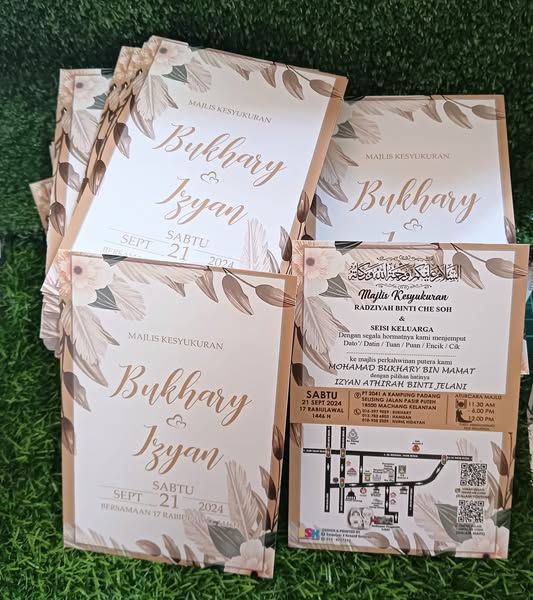 搜索关键词 wedding card package, cheap wedding cards, wedding invitation Kelantan, printing services Malaysia, custom wedding cards, Malay wedding cards, wedding card promotion, complete wedding package, wedding card design, Empayar s printing优势 Complete package including 9 items in one price.,Suitable for busy professionals (nurses, teachers, civil servants).,Various card types available to suit different budgets (budget, craft, readymade, custom).,Also offers other printing services (mugs, flyers, t-shirts, banners).