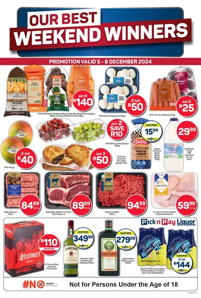 搜索关键词 Pick n Pay, fresh deals, grocery discounts, fresh produce, meat sale, limited time offer, December 2024, grocery shopping, save money, stock up优势 Amazing discounts,Fresh produce,Limited-time offers