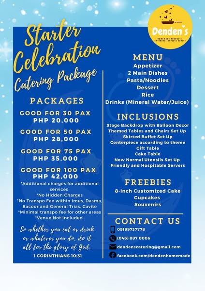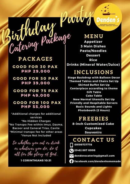 搜索关键词 event catering, catering packages, party catering, wedding catering, cavite catering, affordable catering, all in catering package, packed meals delivery, food tray packages, birthday catering package优势 Hassle-free event planning,Wide variety of food options,Friendly staff,Caters to various events (birthdays, weddings, etc.)