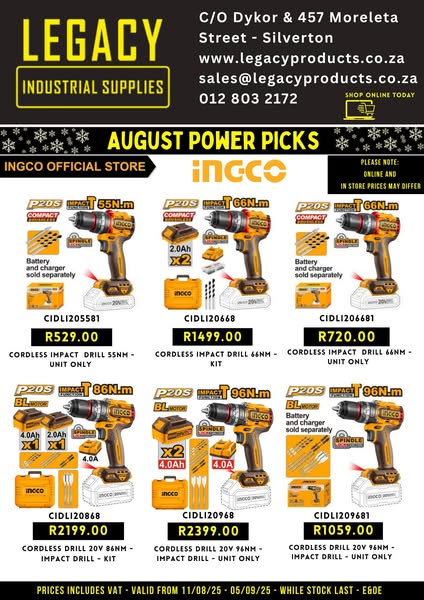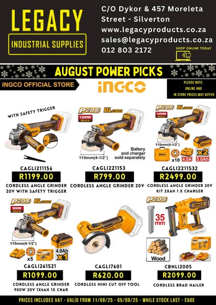 #LegacyIndustrial #PowerPickSpecials #Ingco #Wadfow #ToolDeals #AugustSavings