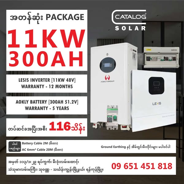 💱11KW LESIS INVERTER- 300AH AOKLY SET: ၁၁၆ သိန်း