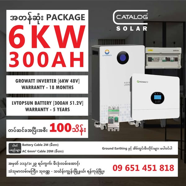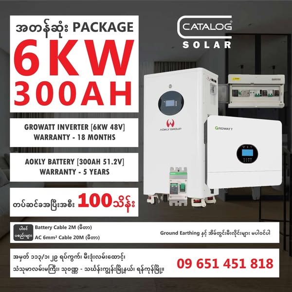 💱6KW GROWATT- 300AH AOKLY BATTERY SET: ၁၀၀ သိန်း