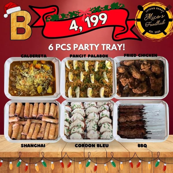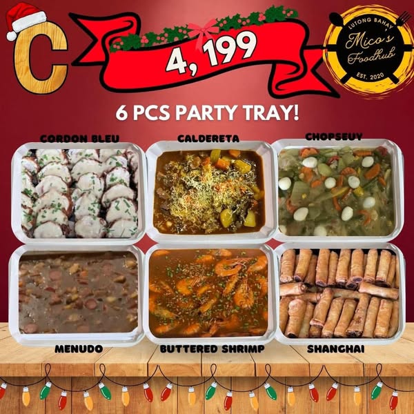 搜索关键词 Christmas catering, party trays, Mico's Foodhub, Manila food delivery, affordable catering, Philippine food, holiday gatherings, ready to serve food, delicious party food, Sampaloc catering优势 Freshly cooked food,Affordable prices,Delicious and ready to serve,Convenient catering for Christmas