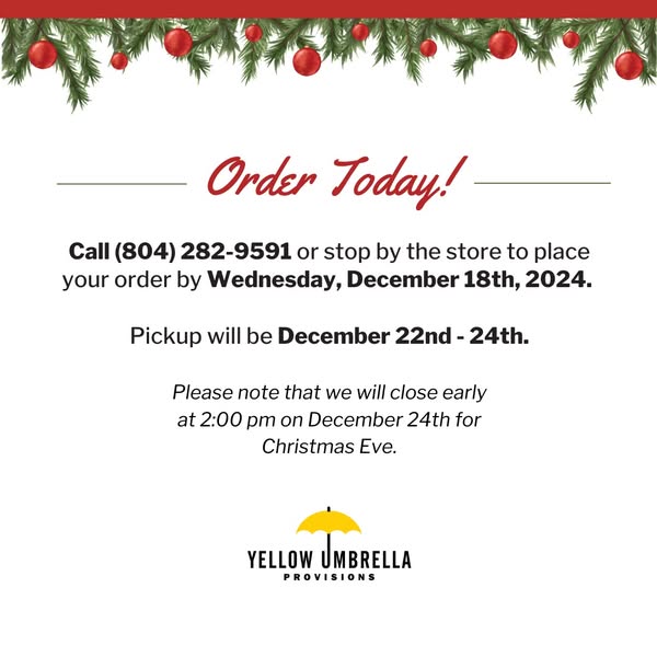 The deadline for placing orders is Wednesday, 12/18. Happy Holidays, and thank you for choosing Yellow Umbrella! 🎅