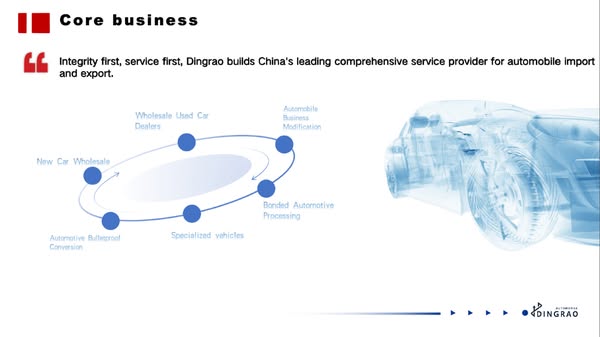 ដោយពឹងផ្អែកលើឆានែលផ្ទាល់ខ្លួន និងរចនាសម្ព័ន្ធប្រព័ន្ធពាណិជ្ជកម្មប្រកបដោយប្រសិទ្ធភាព ក្រុមហ៊ុនបានក្លាយជាក្រុមហ៊ុនដែលផ្តល់សេវាកម្មគ្រប់មុខជួយដល់អតិថិជន ក្នុងការលក់និងនាំចេញនាំចូលរថយន្ត ថែមទាំងការលក់រថយន្តអគ្គិសនី ធ្វើពាណិជ្ជកម្មដៃទីពីរ ឥណទានទិញរថយន្ត ការជួសជុល និងផ្គត់ផ្គង់ផ្នែកបន្លាស់។