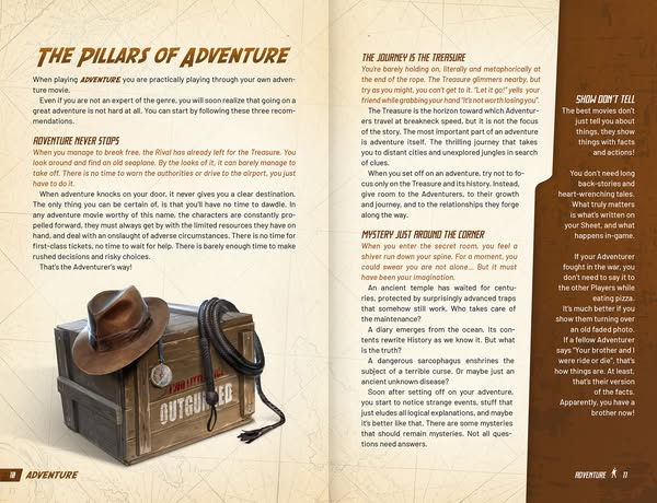 Outgunned Adventure is designed by the Italian game studio Two Little Mice (2LM) and inspired by pulp adventure films. Outgunned Adventure is the first “genre book” in the Outgunned line, and can be played either as a standalone or as an expansion for Outgunned.