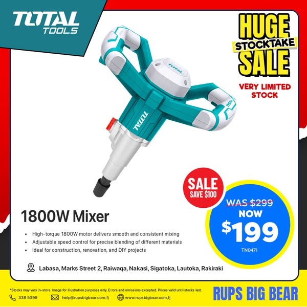 HUGE STOCKTAKE SALE is now on! Don't miss out on our reduced-to-clear items on Total Tools at Rups Big Bear. Check marked locations for availability and grab your deals while stocks last!