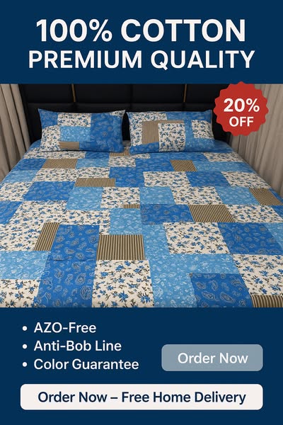 - “ঘরে আনুন আরাম আর স্টাইল – নতুন ডিজাইনের Bed Sheet এখনই অর্ডার করুন!”