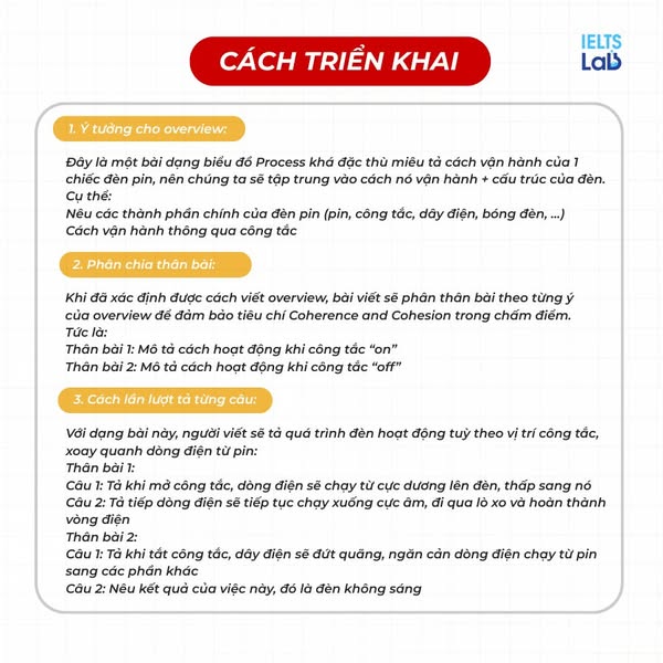 Đề bài miêu tả sơ đồ cách hoạt động của đèn pin LED - một dạng đề Process Diagram đặc trưng trong IELTS Writing. Các bạn tham khảo cách triển khai và bài mẫu band 8.0 từ IELTS Lab do thầy Hà Long biên soạn và cùng luyện tập với Lab nhé!