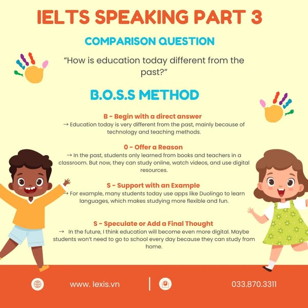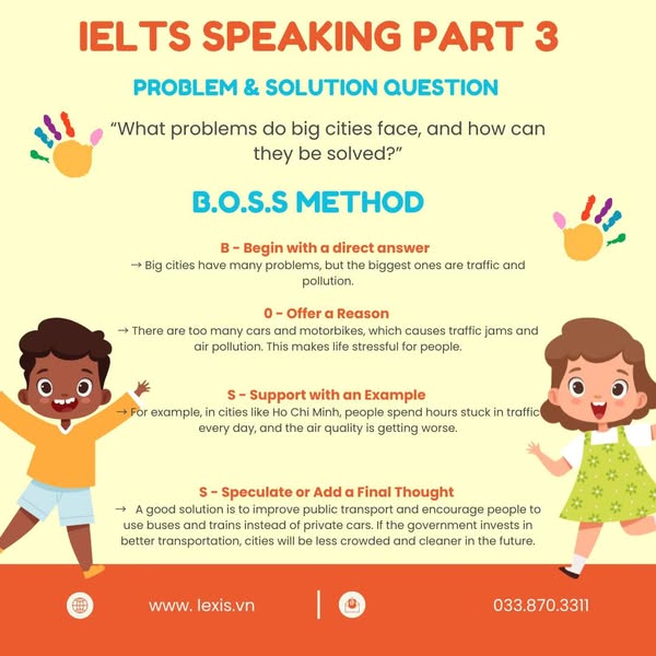 搜索关键词 IELTS Speaking, IELTS Part 3, IELTS Training, IELTS Preparation, Vietnamese Language School, Study Abroad, Lexis Vietnam, Language Learning, Improve IELTS Score, IELTS Speaking Formula优势 Simple and effective formula for answering questions,Provides structure for different question types,Helps students avoid running out of words