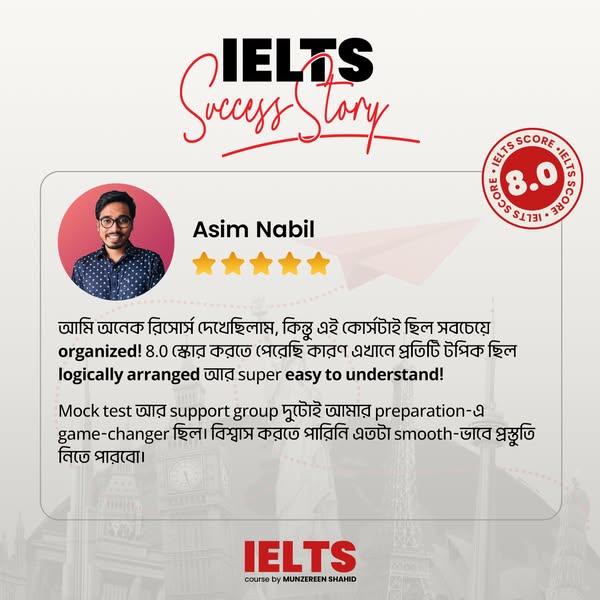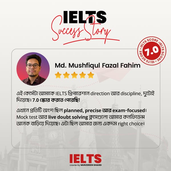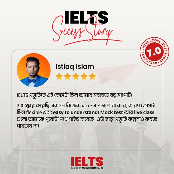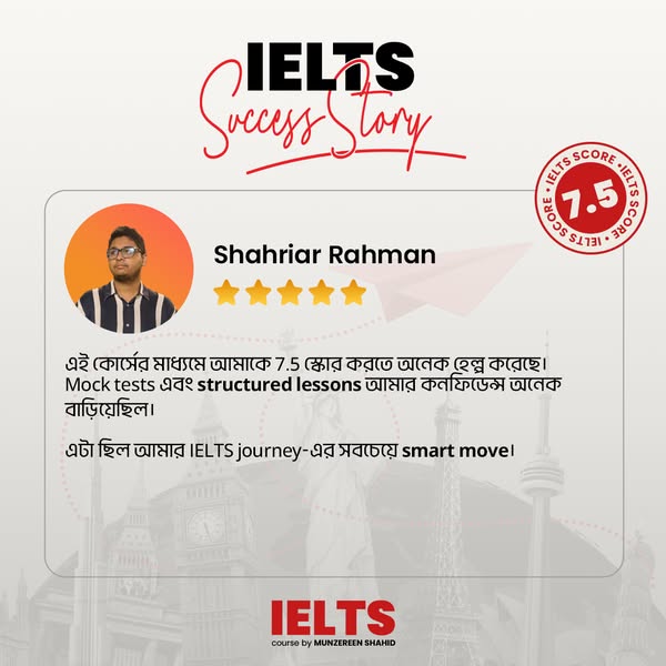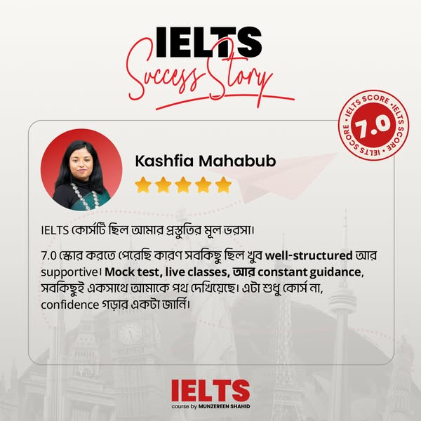 সব প্রস্তুতির সাথে IELTS এ আপনার কাঙ্ক্ষিত ব্যান্ড স্কোর তুলতে প্রিপারেশন নিন মুনজেরিন শহীদের সাথে