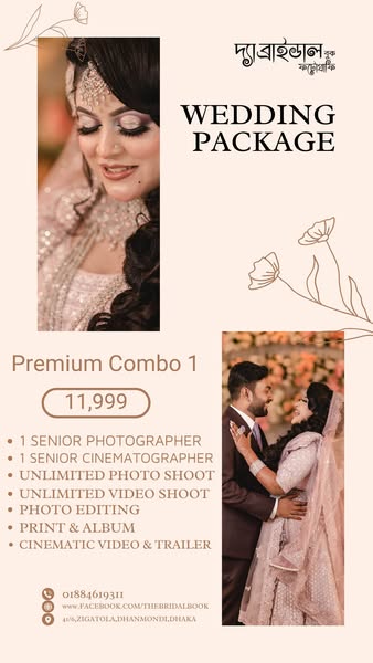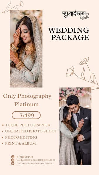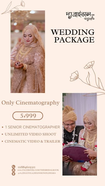 #The Bridal Book-দ্যা ব্রাইডাল বুক premium class wedding photography & Cinematography at Affordable Price!!!! For outside of Dhaka Metropolitan area,Transportation +Accommodation & 45% Shift charge(Package Price)will be added with package price.