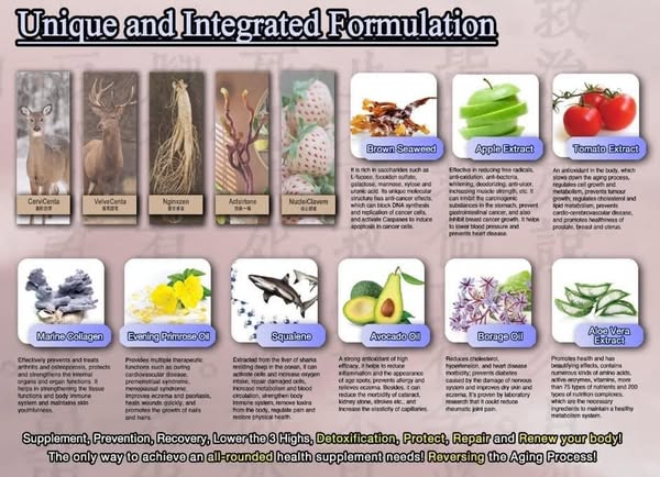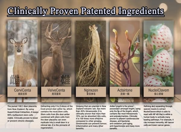 ជាអាហារបំប៉នសុខភាពលំដាប់ខ្ពស់ដែលមានគុណភាព និងសុវត្ថិភាពផ្សំពីទងសុកសត្វក្តាន់ និងគ្រឿងផ្សំធម្មជាតិច្រើនសរុប១៤ មុខមិនមានផលប៉ះពាល់សុខភាព។