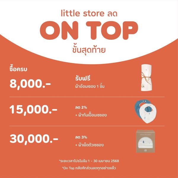 🧡 ซื้อครบ 30,000 ลด 3% แถมผ้าเช็ดตัว Saeson Baby มูลค่า 1,390.-