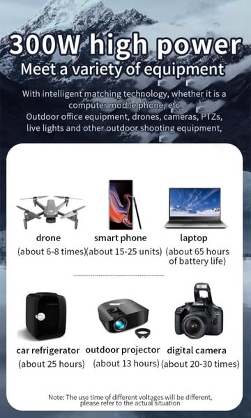 搜索关键词 portable power station, emergency power, outdoor power, 300w power station, 333Wh battery, fast charging power bank, 220V portable power, home backup power, camping power supply, mobile power supply优势 Portable and Lightweight,Large Capacity 333Wh,Multiple Output Ports (USB, Type-C, DC, AC),Fast Charging (2.5hrs),Emergency Power Solution