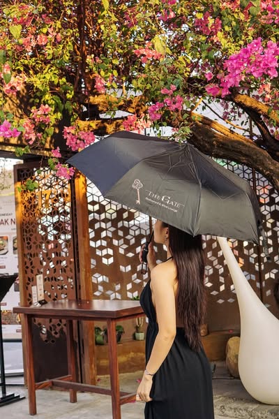 Chiếc dù không chỉ là vật dụng thiết thực, mà còn là điểm nhấn tinh tế – sang trọng, chắc chắn, và gọn gàng như chính cách The Gate chăm chút từng chi tiết cho thực khách.