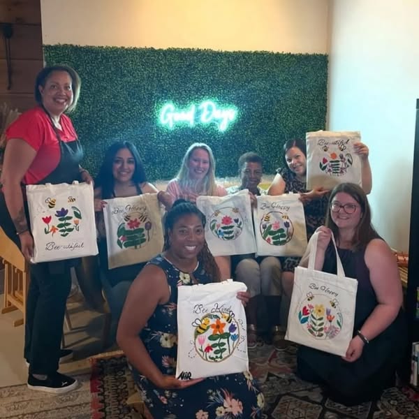 And all the supplies to paint your very own tote bag! Follow along with the featured design and learn to paint cabbage roses! Or go rogue and create your own! All levels of creat9vity are invited. This is a no Judgement all Joy zone.