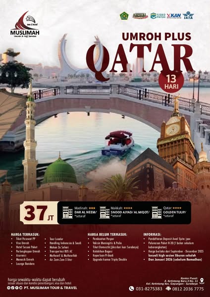 搜索关键词 Umroh Surabaya, Muslim Tour Package, Affordable Umroh, Muslim Travel, Umroh Promo Package, Umroh Hemat Package, Muslim Holiday Package, Baitullah Visit, Experienced Guide, All inclusive umroh优势 Super Hemat Umroh Package,Includes Muslim Country Tours,Free Fast Train to Haramain,All-inclusive equipment and insurance,Experienced guide