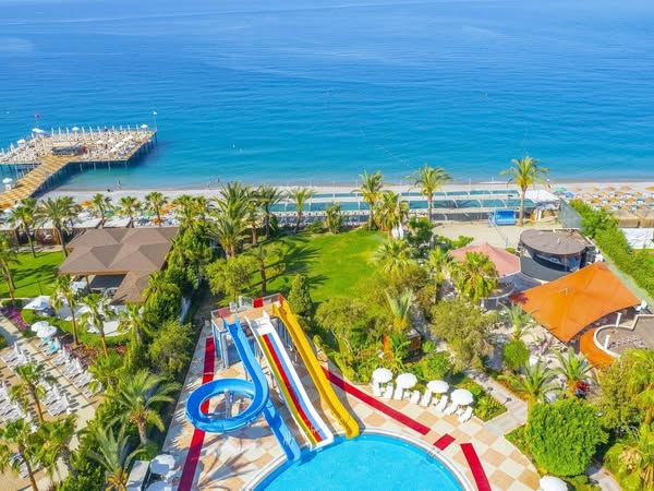 A Stella Beach közvetlenül a tengerparton van, saját stranddal, medencékkel és csúszdákkal – szóval pihenés és móka egy helyen. A modern, erkélyes szobákhoz all inclusive ellátás és non-stop szórakoztatás jár, profi animátorcsapattal és vízi élményekkel egész napra .