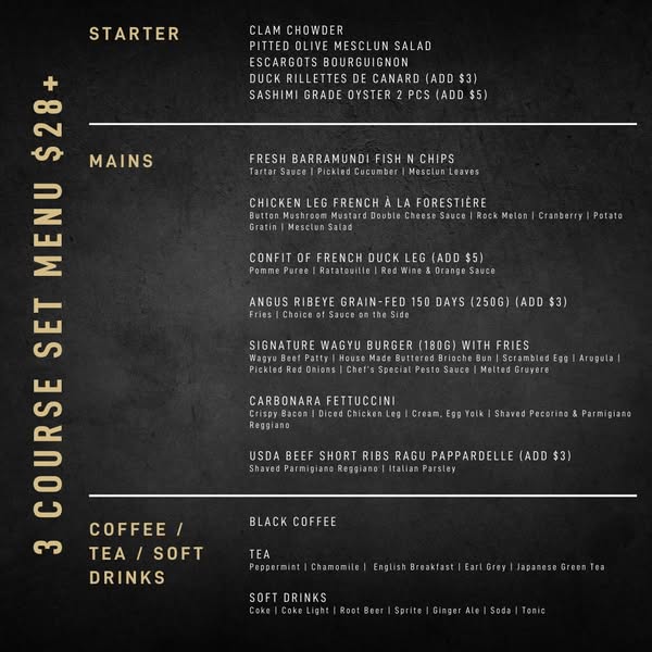 3 Course Daily Set Lunch at $28+/pax (available on weekends too!). Wow yes you hear it right! Enjoy our best sellers duck rillettes, escargot, oysters and many more at just $28+/pax. Be sure to pair with our cocktails and cold beer at 20% off for a relaxing afternoon. See you soon!