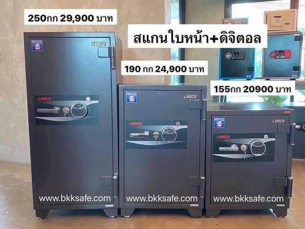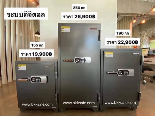 搜索关键词 safe box, fireproof safe, small safe, large safe, cheap safe, Leeco safe, Kingdom safe, digital safe, fingerprint safe, document safe优势 Wide variety of safes (sizes, weights),Fireproof options available,Free delivery in Bangkok and surrounding areas,Multiple brands available (Leeco, Kingdom, Chubbsafe, Godrej, Worldsafe, BKKSafe),Showroom available to view products