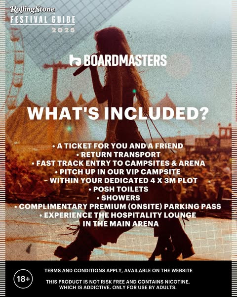 搜索关键词 Boardmasters Festival, VIP Tickets, Ticket Giveaway, Music Festival, ZYN Partnership, UK Events, August Festival, Free Tickets, Summer Festival, Cornwall Events优势 VIP experience,Free tickets,Iconic festival