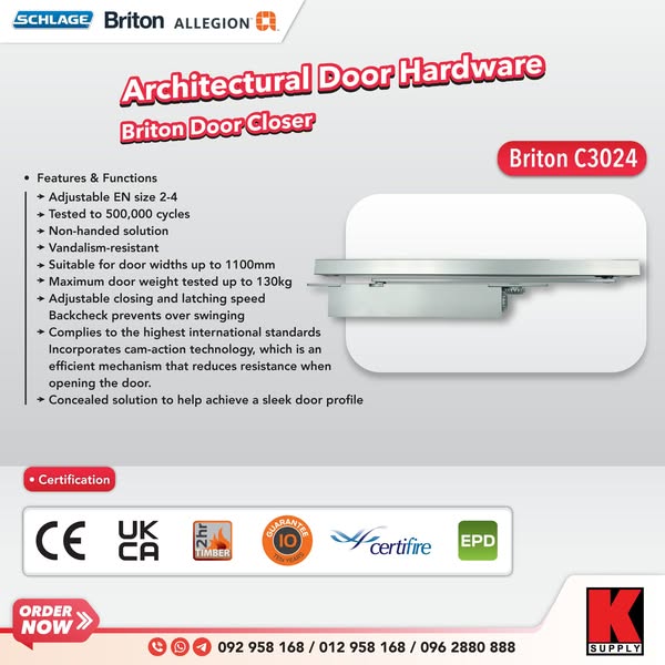 Brought to you by K SUPPLY Co., Ltd., who’s specialized in providing wide range of high-quality door hardware. & ironmongeries. Designed to deliver exceptional security and durability, ensuring the protection of your building projects.