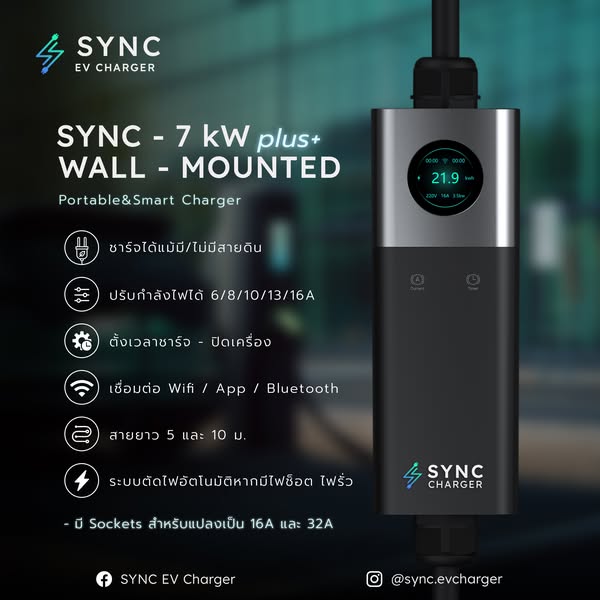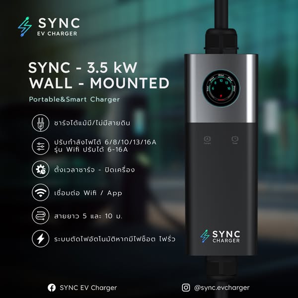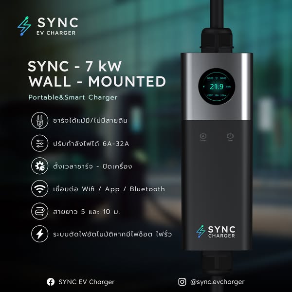 搜索关键词 portable ev charger, wall mounted charger, electric vehicle charging, TUYA app control, SYNC EV Charger, ev charging solutions, minimalist ev charger, easy ev charger, 2-in-1 ev charger, thailand ev charger优势 Portable and Wall-Mountable,Minimalist Design,Controlled via TUYA App,Quick and Easy to use