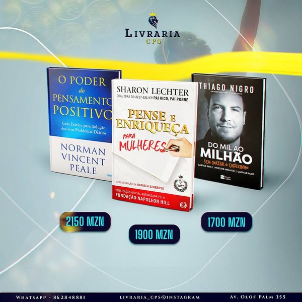 #CrescimentoPessoal #DesenvolvimentoHumano #LivrosFinanceiros #SaúdeMental #LiderançaEmpresarial #LivrosMotivacionais #AprendizadoContínuo #SucessoFinanceiro #FamíliaEquilibrada #LeituraTransformadora #Maputo #Matola #EntregaGrátis #InvestimentoEmTi