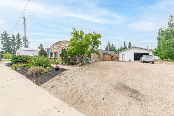Presenting this well kept, mixed-use property situated on 4 lots in a prime location, downtown Marwayne. Construction of this 3432 sq ft building was completed in 1940, using hand carved stone brought from the North Saskatchewan River Valley. The property features a 2200 sq ft retail or business space in the front, and a 1232 sq ft residence with private entrance in the back. The front space offers a wide range of uses, with plumbing available, and updated furnace and electrical system. The residence is a one bedroom, with an additional flex space available, large bathroom and open concept kitchen and living room. Upgrades include a new (2024) metal roof on the main building and detached double heated garage, additional insulation, windows, flooring, plumbing and electrical. The residential suite is currently rented for $1100 per month, utilities included. The owner reports Utilities for the entire property totaled $6400 for 12 months. New owners could take this classic building in several directions, utilizing the front space for retail, professional office or services, craft or studio space, or even a sandwhich and coffee shop.