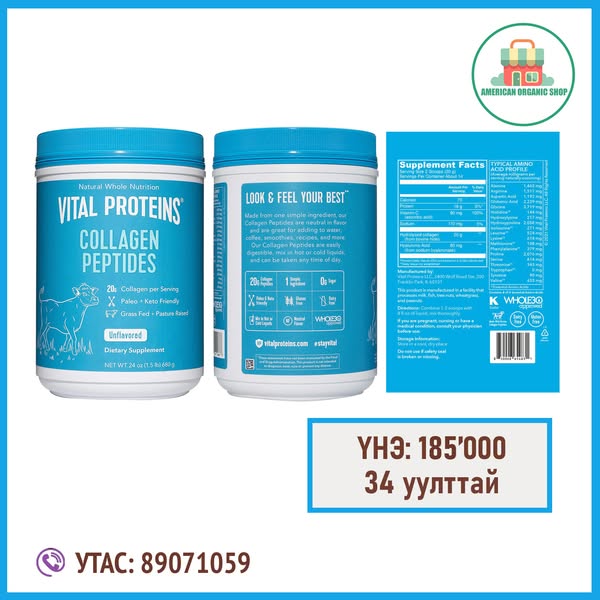 - Vital proteins collagen peptide - Уураг, Амино аксидаар баяжуулсан.