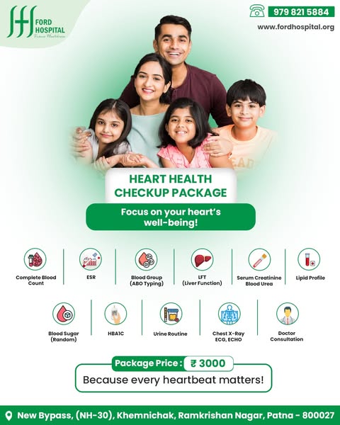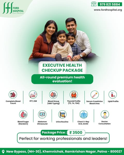 #FordHospital #HealthCheckupPackages #PreventiveCare #HealthyLiving #PatnaHealth #ExecutiveCheckup #FullBodyCheckup #WellnessMatters #StayHealthyPatna #HeartHealth #FamilyWellness #BookNow