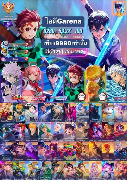 搜索关键词 ROV ID trade, Arena of Valor account, ROV skins, mobile game trading, online game account, ROV Thailand, buy ROV ID, sell ROV ID, Garena ROV, ROV community优势 Updated skin collection with dance emotes,Admin accepts installments and ID trade-ins,Name change cards are available,Large following admin (19,000+),Active community group (12,000+ members)