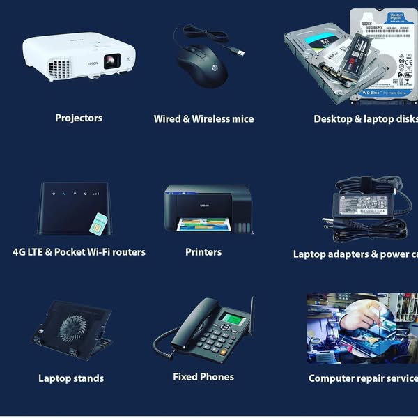 Si ibyo gusa tubafitiye nama Routers(pocket Wi-Fi routers, Wi-Fi extenders), LAN cables, printers ndetse n'izindi electronic devices zitandukanye.