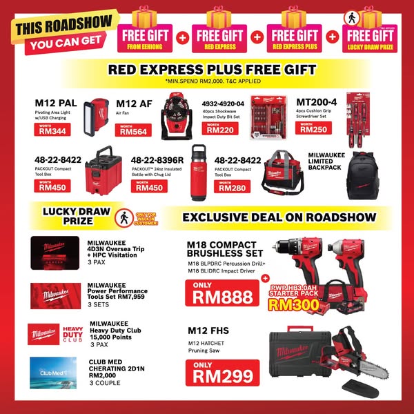 🛠 Just walk-in and purchase at our Milwaukee Roadshow and you’ll get 4 FREE GIFT (*T&C applied):