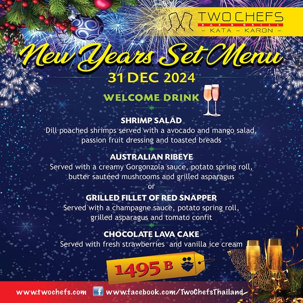 #SeasonsGreetings #Christmas2024 #NewYearEve #NewYearsEve2025 #TwoChefs #TwoChefsBarandGrill #PhuketEats #KataBeach #KaronBeach