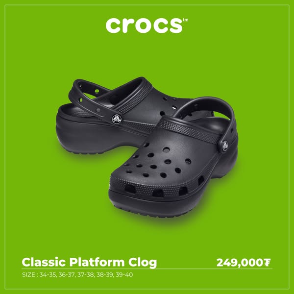 搜索关键词 Crocs Mongolia, New Crocs, Crocs online, Buy Crocs, Crocs stores, Fashion shoes, Comfort shoes, BTF.mn Crocs, Shoppy.mn Crocs, Footwear sale优势 New models available,Multiple purchase options (Sono, Storepay, etc.),Available online and in physical stores