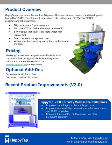 搜索关键词 HappyTap handwashing, kids hand hygiene, portable handwash station, water efficient tap, affordable handwashing, hand hygiene education, clean hands campaign, global handwashing day, handwashing for schools, handwashing products优势 Easy to Use,Portable,Water-efficient,Affordable,Supports Hygiene in Resource-Limited Areas