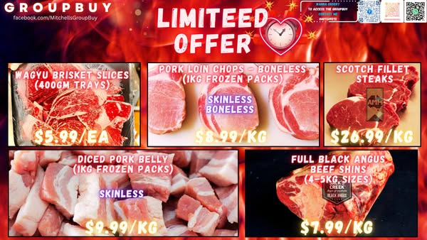 搜索关键词 group buy deals, end of financial year sale, discount meat products, cranbourne park shopping, whatsapp flash deals, limited time offer, meat delivery, grocery discounts, group purchasing, mitchells quality meat优势 Discounted Prices,Group Buying Power,Convenient Pickup/Delivery,Flash Deals