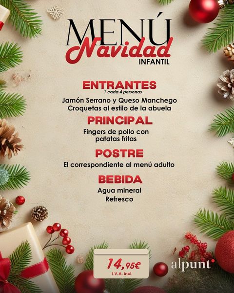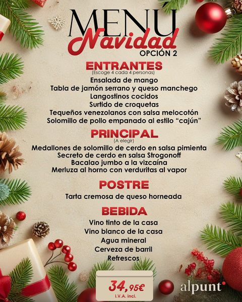 搜索关键词 Christmas menus, Mediterranean cuisine, Granada restaurant, family Christmas dinner, special Christmas offers, festive atmosphere, Alpunto Mediterraneo, holiday season, family dining, restaurant reservation优势 Unique gastronomic experience,Mediterranean flavors,Special menus for families and groups,Variety of options,Cozy and festive atmosphere,Spectacular price