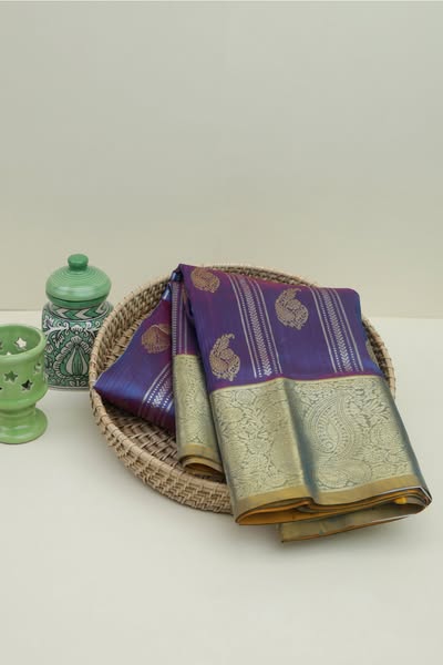 For a goddess-like glow that complements your festive vibes, dazzle in our Venkatagiri Silk Parrot Green Saree. Intricate paisley buttis gracefully adorn the body, while the contrast border showcases stunning floral buttis, exuding fashion-forward elegance. The ensemble is completed with a brocade pallu and a contrast with border blouse.