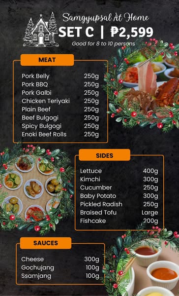 搜索关键词 Samgyupsal at home, Korean BBQ delivery, Christmas dinner, Grilling set included, Food delivery service, Holiday promo, Limited slots offer, Easy dinner ideas, Home grilling, Filipino Christmas优势 Complete grilling set included,Convenient at-home dining experience,Limited slots for free grilling set use